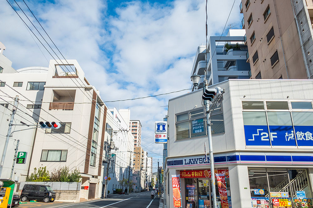 町名は異なっているものの、3つのエリアの街並みはさほど変わるわけではなく、中心部に近い都会の街並みというイメージ。雑居ビルや高層マンション、飲食店、コンビニなどがひしめくエリアです。