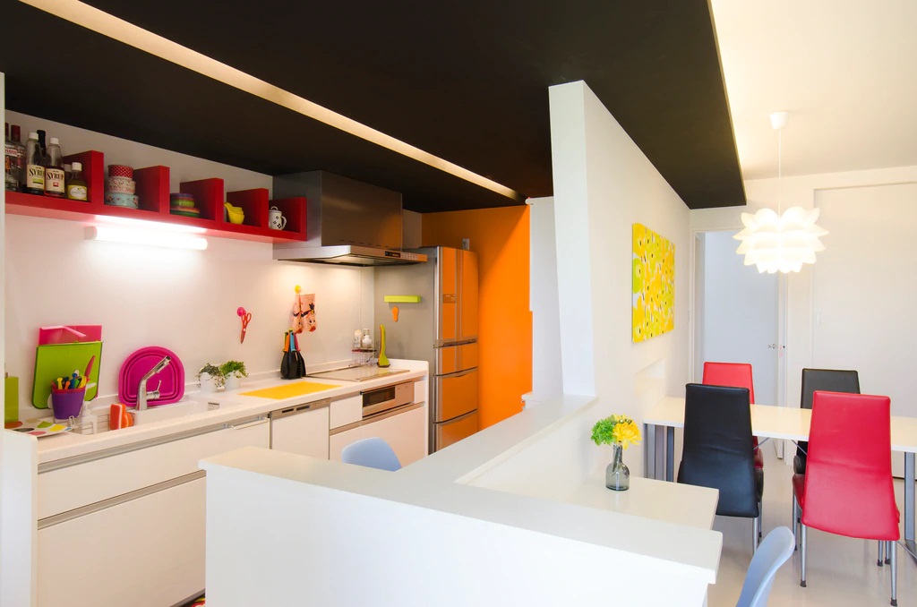 朝・昼・晩と立つことが多いキッチンは、活力を与えてくれるビビットカラーを使用するのもいいでしょう。ビタミンカラーのカラフルなクロスは、鮮やかな色合いが唯一無二のキッチンを演出してくれます。