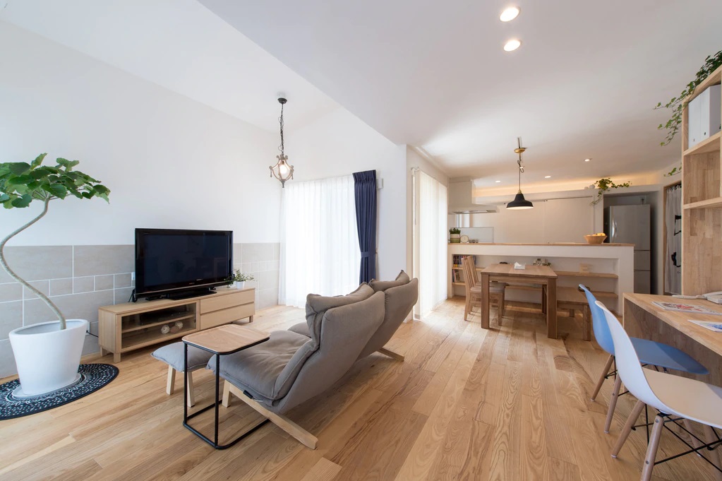 友人を招いたり、家族でテレビを見たりと何かと人が集まるリビング。そんなリビングでは、落ち着いた空間を演出してくれるウォームカラーのクロスがおすすめです。目線が集まりやすいテレビの背面に、さり気なくクロスを使用することでいつもの景色が新鮮になります。