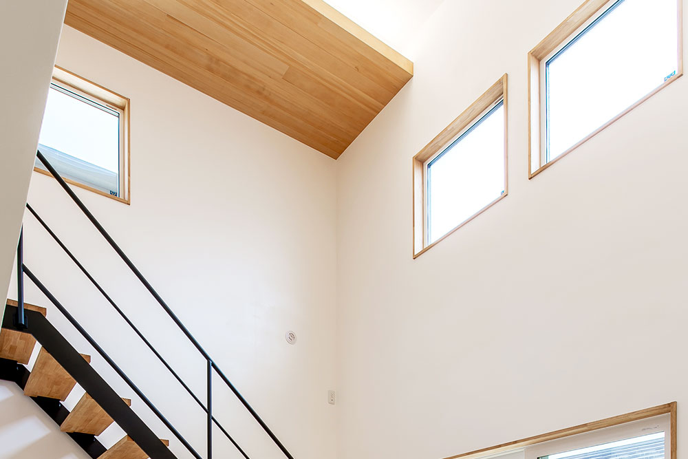 南側に隣家がある場合でも、天窓(トップライト)や壁の高い位置にある窓(ハイサイトライト)のように、高い位置に窓を作ることで、外からの光を取り込める可能性があります。高い位置に窓を作ることで、効率的に日光を室内に取り込むことができるだけではなく、周囲からの視線が室内に入らなくなるというメリットがあります。高い位置の窓から光を取り込むことで、カーテンなどを開けた状態で、プライバシーを確保したまま一日過ごすことができるのです。
