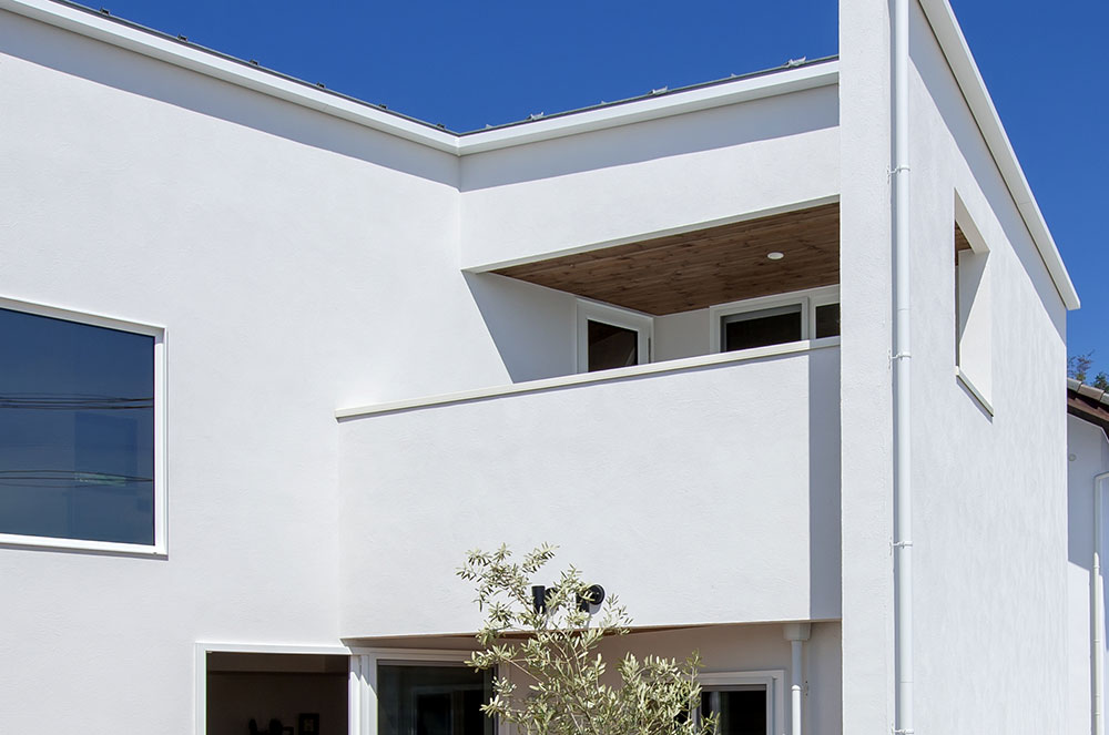 インナーバルコニーとは、バルコニーの部分が建物の中に引っ込んでいるタイプのバルコニーのこと。隣家が密集している地域では、建物からはみ出しているタイプのバルコニーを作ろうとすると、広い面積が取りづらくなってしまいます。しかし、インナーバルコニーであれば、2階の居室の広さを調節する必要があるものの、広いバルコニーを取りやすくなっています。