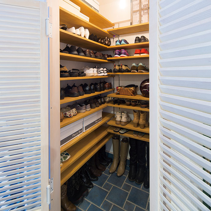 靴の量が多く普通のマンションのシューズインクローゼットでは手狭であるという方にとって、今日履く靴をゆったりと選べる土間のシューズインクローゼットは魅力的ではないでしょうか。