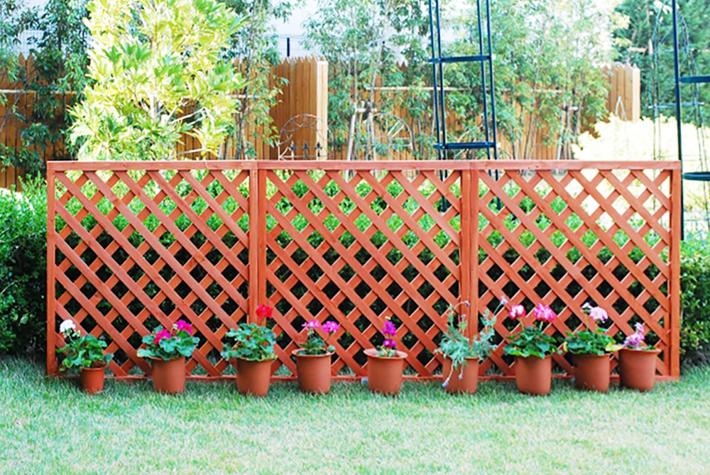 2階以上のお部屋で、ベランダの下の道路や隣家からの視線が気になる場合は、柵の部分にラティスフェンスを置くと、効果的に目隠しできます。ラティスフェンスとは、画像のような網目状の洋風の木組みで作られたフェンスで、パーティションや衝立といった名称でも知られるアイテム。ホームセンターのガーデニング用品のコーナーなどで売られているのを見かけたことがある方もおられることでしょう。