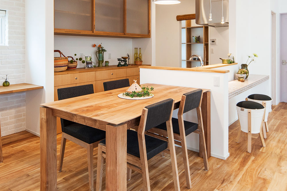 造作のダイニングテーブルやカウンターテーブルが、家族構成や家事動線にぴったりのものを設置できるのに対し、既製品のテーブルを選ぶ場合は自分たちにぴったりのものを見つけるのが大変になります。